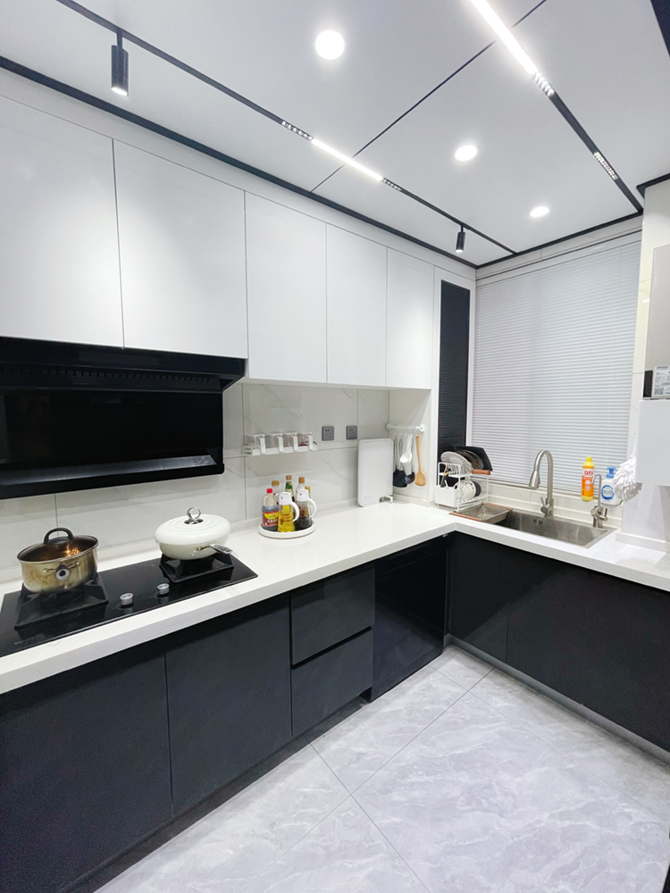 我家厨房是U型,长3.25m,宽1.65m,不大,但是该有的都有,装修初期我就预留好了插座,洗碗机,净水器,垃圾处理器这些提升生活幸福感的东西一样不能少!!