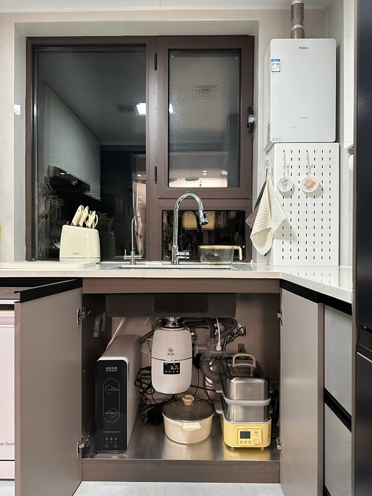 婚前一直跟公婆一起住,房子下来后就分开了,所以一些高科技他们认为白花钱的东西,比如: 洗碗机/嵌入式冰箱/洗地机/垃圾处理器等等,我全部自己安排上了!主打一个享受,能不动手就不动手!