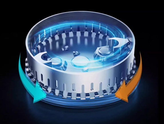 研磨盘结构相较于传统研磨盘质量更重、动平衡更加稳定,8重精细研磨系统,通过动态研磨锤的凹面结构和静态研磨环的凸面结构相交叉结合而成,增加剪切力,提高研磨能力。